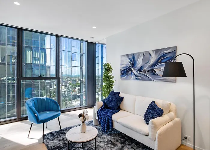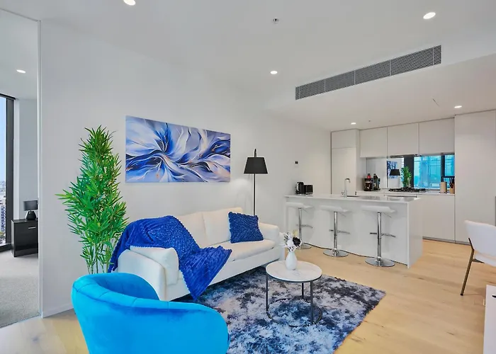 The property includes an equipped kitchenette featuring an oven and a dishwasher. The accommodation is also just 1.8 km from Flinders Street rail station. The inclusion of an indoor pool at High-Rise Luxury 2-Bedroom Apartment With Pool, Gym And Views guarantees a more enjoyable stay. Maintain your exercise routine effortlessly at a fitness room offered by the apartment.